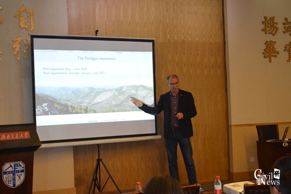 Jakob Mann教授在本次讲座中介绍了为NEWA(新欧洲风图谱)所做的众多实验。NEWA旨在从技术和理论基础、政策制订及工业应用方面提升风资源预测和风场规划能力。教授首先讲述了利用陆上扫描激光雷达技术,结合海洋和卫星信息,减少近海岸风资源估计的不确定性的实验。同时利用配备有运动传感和补偿系统的激光雷达对渡口附近进行测试。并且介绍了在具有复杂地形的山脉中开展的预实验与主要实验。最后Jakob Mann教授谈到欧洲的许多科研单位与美国的众多院校与科研机构进行合作来完成Perdigao实验(NEWA计划的一部分)。教授在报告中列举了许多风工程实验例子,语速平缓,讲解通俗易懂,在场的老师与员工对这种理念表现出了浓厚的兴趣。