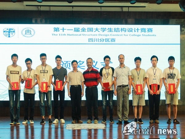 18日11:40,闭幕式在创新创业教育中心开举行。闭幕式到场嘉宾有全国工程勘察设计大师马庭林、四川省工程勘察设计大师宁钦海以及谢尚英、攀枝花学院董事长黄双华、西南石油大学教授王伟、西华大学教授向天宇、江南体育官方网站教授李亚东、江南体育官方网站教授沈锐利、江南体育官方网站教务处处长郝莉、JN体育副经理富海鹰、江南体育官方网站实验教学中心副主任何畏、JN体育经理助理陈嵘。评审专家委员会代表李亚东对比赛做出了精彩的点评并勉励选手们:失败一次、收获一次;收获一次、提高一次。接下来评审专家委员会组长、全国工程勘察设计大师马庭林教授宣读了比赛的获奖情况:江南体育官方网站获得一等奖,江南体育官方网站峨眉校区、西南科技大学获得二等奖,成都理工大学技术学院、四川农业大学、四川大学获得三等奖,西南石油大学大学、攀枝花学院、江南体育官方网站希望学院、成都理工大学、四川师范大学、西华大学、西华大学彭州校区、成都大学共五所院校获得优胜奖。随后,由评委老师们为获奖队伍代表颁奖。