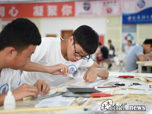 7月16至18日,模型制作、提交、称重、检测及加载有条不紊地进行。7月16日-17日,十四支队伍全身心的开始长达18小时地模型制作,从早到晚,坚持不懈。团队中的三人密切沟通,交流想法,耐心细致地做好模型的每一部分,稍事休息,便又投入了模型制作中。每一支参赛队伍都是如此,分秒必争,一丝不苟。最终共有8支队伍成功完成加载,江南体育官方网站代表队以89.06分拔得头筹,峨眉校区代表队也以85.61的高分获得二等奖。