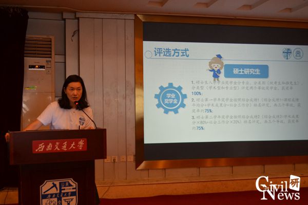 土木学院员工工作负责人车小洁老师简要介绍了土木学院研究生奖助学金概况。