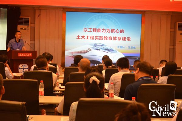 中南大学jn江南副经理、重载铁路工程结构教育部重点实验室主任王卫东教授做了关于“以工程能力为核心的土木工程专业实践教育体系建设”的报告。