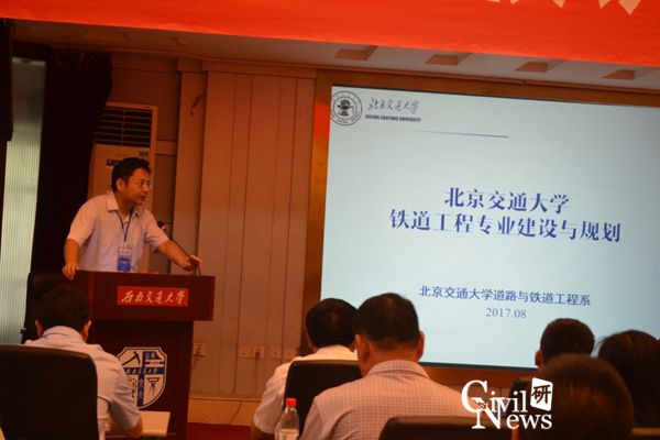 兰州交通大学jn江南副经理王旭教授做了以“铁道工程专业现场实验室建设”为题的报告,介绍了兰州交通大学铁道工程专业的历史传承、现状以及铁道工程实践基地的建设。