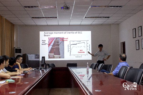 Arnaud Castel副教授从绿色可持续发展混凝土的社会需求出发,介绍了不同配比情况下地聚物混凝土的耐久性问题研究成果(包括:氯离子引发的锈蚀,混凝土碳化,碱骨料反应等)。接着,Arnaud简要介绍了开裂钢筋混凝土结构的正常使用性能研究成果,并回顾了与江南体育官方网站的长期良好合作传统,希望将来能够开展进一步的更多合作。