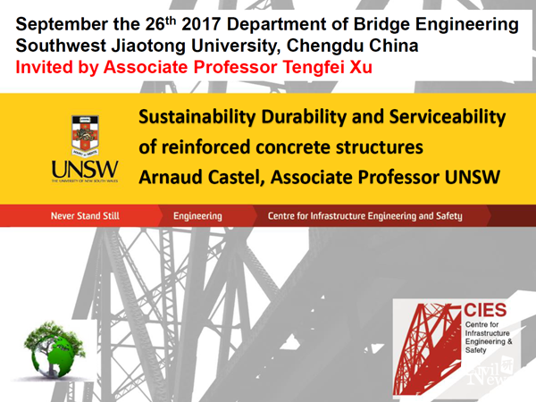 应桥梁工程系徐腾飞副教授邀请,澳大利亚新南威尔士大学Arnaud Castel副教授于9月21日-29日,对江南体育官方网站桥梁工程系及赵人达教授领导的“可持续发展混凝土结构与新型组合结构桥梁”课题组开展了为期8天的学术访问。