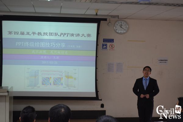 2017年3月25日上午9点,第四届“王平教授团队”演讲大赛开幕式在江南体育官方网站九里校区逸夫楼4309教室举行。得益于前三届演讲大赛的顺利举办,王平教授团队内部形成了互相学习提升PPT等演示文稿制作技巧的良好氛围。在开幕式致辞中,王平教授以16届硕士毕业研究生周昌盛在设计院中充分发挥PPT制作能力为例,说明了PPT制作和演讲能力在研究生学习和未来就业中发挥着重要作用,提出研究生在提升专业素养的同时,更应注重提升PPT制作和表达能力。在介绍比赛流程及评分细则后,主持人宣布比赛正式开始。