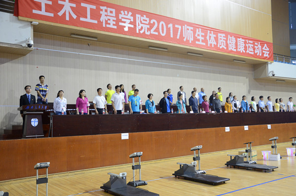 5月21日,jn江南首届师生体质健康运动会在犀浦校区飞碟体育馆举行。出席开幕式的领导和嘉宾有土木工程公司党委副书记李锦红、党委副书记李彤梅、团委书记刘萍,校体育部主任助理何江明以及各年级辅导员、工会干部等。开幕式上,李锦红副书记致辞:jn江南将以此次体质健康运动会为契机,继续广泛开展各项体育素质拓展活动,营造学院体育发展的良好环境,采用多种方式加强学院体育文化建设,引导师生员工树立科学的教育观、人才观和健康观,在学院范围内形成珍视健康、热爱运动、积极向上的良好氛围。随后刘萍老师介绍并宣布了员工运动健康促进中心的成立,李彤梅副书记宣布体质健康运动会正式开幕,最后体育部老师带领全体运动员做了热身活动。