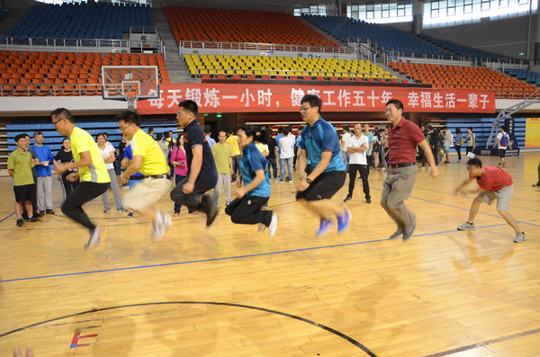 本次体质健康运动会分为教工组和员工组,设置体质测试项目和趣味项目。教工组体测项目包括身高体重、肺活量、握力、坐位体前屈、闭眼单脚站立、仰卧起坐、俯卧撑,员工组体测项目设置男子全能、女子全能、体测单项(俯卧撑、肺活量、立定跳远、握力、坐位体前屈),趣味项目分别设置跳绳、乒乓球接力等团体合作项目。在体测项目参与度上,教工近60人次参与,员工近350人次参与;在趣味项目参与度上,教工近160人次参与,员工近800人次参与。