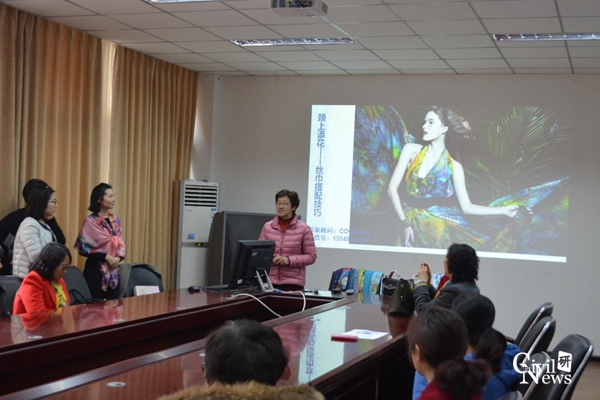 作为此次活动的主讲嘉宾,COCO老师从丝巾的发展、丝巾搭配原则、认识丝巾、图案情感、色彩选择策略和丝巾的妙用及系法六个方面向各位女教师介绍了丝巾在女性同胞生活中的妙用。其中,COCO老师给各位女教师在丝巾选择方面支出了妙招——根据自己的喜好,为个人做出最佳选择。在展示丝巾的系法时,COCO老师更是手把手教学,向各位女教师介绍了平结、正反折纸节和蝴蝶结三种系法。