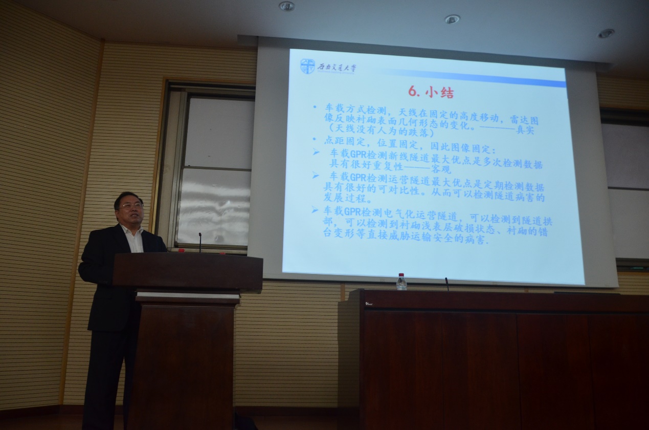 在主题为“隧道工程环保与防灾救灾技术”分会场报告中,包括隧道防护结构及预警系统的应用、高性能混凝土配置及隧道灾害防治整治技术研究、先进设备及材料在隧道施工中的应用等研究领域。其中,公司昝月稳教授进行了题为《车载GPR技术在隧道全生命周期中的应用》的精妙解析,车载GPR技术能够极大提高隧道病害的检测效率,且获得国际隧道与地下空间协会2015年度技术创新奖;中煤科工集团重庆科研院有限公司总工何清进行了题为《隧道安全及成套技术装备》的精彩汇报,提出“没有隧道技术,就没有今日高铁”,并介绍了隧道瓦斯防治成套技术装备等一系列装备;公司蒋雅君副教授进行了题为《高寒地区隧道喷膜防水应用实例及经验》的出色解说,详细介绍了防水保温构造,并分享了他个人在喷膜防水施工中的经验,提出“防水是基础,排水是核心,保温是关键”的隧道冻害防治措施。全场掌声雷动。