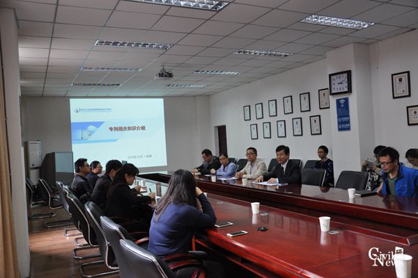 首先,土木学院祝兵副经理代表学校对秦处长及相关同志的到来表示热烈欢迎,同时对秦处长将要作的专利报告非常期待,也认为针对高校普及和提升专利相关知识是非常必要和迫切的。
