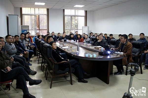 接着,严猛博士针对桥梁工程行业热点问题及桥梁检测行业发展现状进行了分析,对如何开展科研工作,提出“以生产决定研发、以研发促进生产、以公司管理研发”来提高研发,同时介绍了现阶段快速加固项目、桥墩防撞项目以及信息化建设项目等进展。严猛博士的汇报开阔了在座研究生的思路,倡导团队研究生潜心钻研,巩固理论基础、做到多看书、多思考。会议过程中,参会人员积极讨论,学术氛围浓厚。