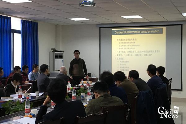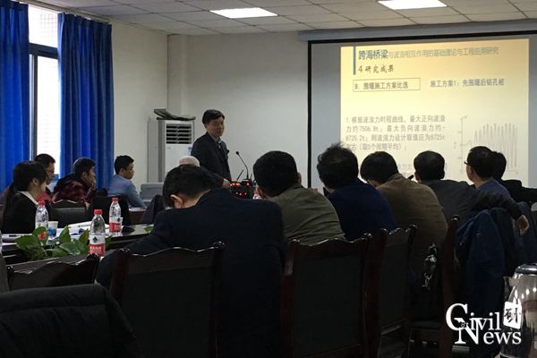 接着,祝兵副经理就跨海桥梁与波浪相互作用的基础理论与工程应用研究作了汇报,先介绍了研究的背景和内容,然后从理论研究、数值模拟、水槽试验和现场实例等方面对研究方法作了详细讲解,得到了一系列的理论研究成果和数值研究成果,并举例说明了三维数学模型的工程应用。然后江南体育官方网站张建经教授的员工廖蔚茗博士就长期荷载和地基振动作用下的单桩响应研究作了汇报,他的研究得到了河海大学老师的称赞。