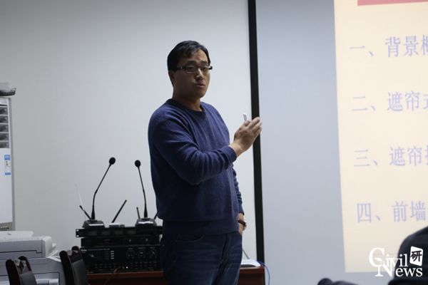 上午茶过后,河海大学贺瑞老师就海底大型圆柱薄壳型基础动力阻抗解析理论研究作了汇报,主要介绍了在现在比较热门的海上风机、风力发电背景下,对桩基振动理论的深入研究,讲到了winker模型、Novak薄层法等传统的桩基振动理论的局限性,提出了新型的桩基振动理论及其优点。接着江南体育官方网站魏凯副教授就飓风作用下海上风力发电机组风险评估作了汇报,主要结合他在国外三年的研究工作从近海风电场研究需求、近海风机单桩基础全寿命期和潮间带风机单桩基础实验等方面作了详细介绍,至此,上午汇报结束。