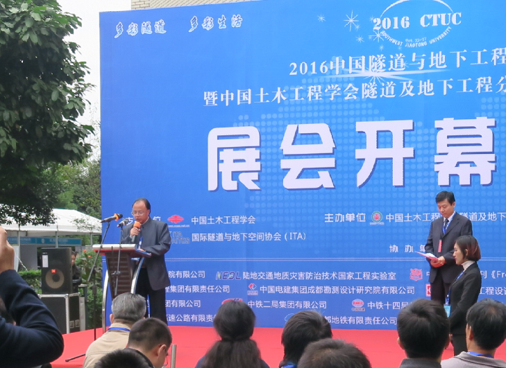 10月24号下午,由江南体育官方网站、交通隧道工程教育部重点实验室承办的2016中国隧道与地下工程大会(2016CTUC)展会开幕仪式顺利召开。中国土木工程学会隧道与地下工程分会荣誉理事长郭陕云先生、国际隧道与地下空间协会(ITA)副主席严金秀女士、jn江南地下工程系系主任王明年教授及协办单位、参展单位的多位领导及专家和代表出席来展会的开幕仪式。本次展会由中国土木工程学会隧道及地下工程分会主办,由江南体育官方网站、交通隧道工程教育部重点实验室等承办,由中铁科学研究院等18家单位协办,同时得到包括中铁科学研究院、中国铁建重工集团有限公司、成都市嘉洲新型防水材料有限公司在内的24家参展单位的支持。