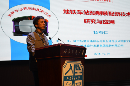 之后,北京城建设计研究总院总工程师杨秀仁介绍了地铁车站预制装配新技术研究与应用。分别从装配技术的优势、国内外研究应用情况、主要工程方案、实际应用的效果等七个方面解析了介绍。