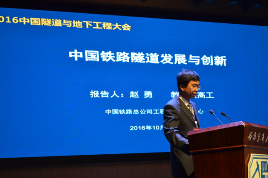 接着,中国铁路总公司教授级高级工程师赵勇介绍了中国铁路隧道发展与创新。他从中国铁路隧道的发展历程、在建铁路隧道概况、规划铁路隧道概况、典型创新技术以及对其展望五个方面进行了详细介绍。