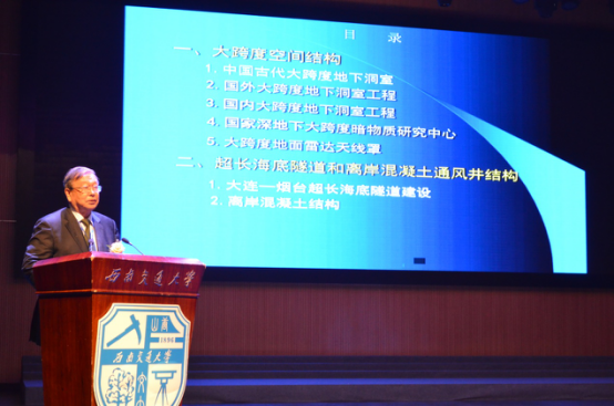 接着,周丰峻院士向我们介绍了大跨度空间结构和超长海底通道。他从大跨度空间结构的介绍、超长海底隧道和离岸混凝土通风结构这两方面与参会代表进行了分享。