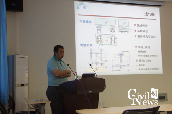 对“高速铁路车桥动力分析方法及应用”,张楠教授首先对车桥动力耦合分析进行了概述,讨论了影响车桥动力耦合作用的各项因素,指出了车桥动力分析需解决的问题,介绍了车桥动力分析的传统简化模型和计算方法。在此基础之上,张教授提出了一种新的车桥动力分析计算方法——全过程迭代法,并用秦沈客运专线现场试验数据验证了该方法的可靠性。