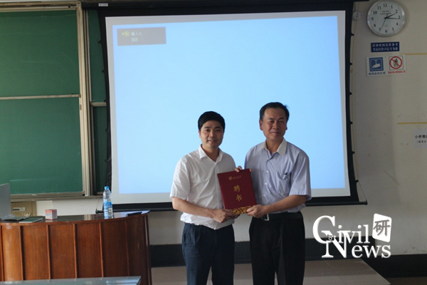 土木学院副经理苏谦教授向周南山教授颁发江南体育官方网站客座教授聘书