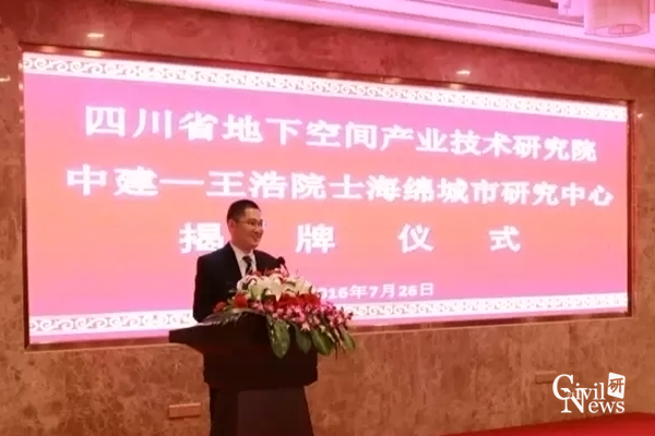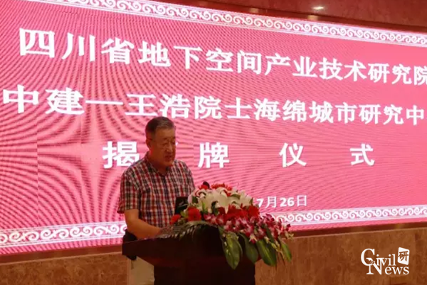 7月26日上午,中建地下空间有限公司在蓉举行了“四川省地下空间产业技术研究院”、“中建——王浩院士海绵城市研究中心”(以下简称:“产研院”、“院士研究中心”)的揭牌仪式。中建地下空间有限公司首席顾问中国工程院院士王浩、中建设计集团有限公司执行总经理周文连、四川省科学技术厅副厅长、党组成员田云辉、四川省住房和城乡建设厅勘察设计与科技处处长黄兴华、四川省成都市青羊区领导李香贵、江南体育官方网站科技产业集团副总经理王力等出席仪式并作重要讲话。