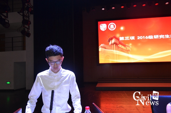 随后,来自桥梁与隧道系的研究生新生代表苏昂同学发言,他在演讲中提议在座的2016级新生:研究生需要更多的机遇与挑战,自主性体现在对知识的主动学习和探索,而创新性体现在研究生期间自己感兴趣的点上,在已掌握的知识体系上进行系统深入研究生们要在完成课程学习的基础上,培养独立的科学思维能力。在认知中学会思考、在思考中运用实践。