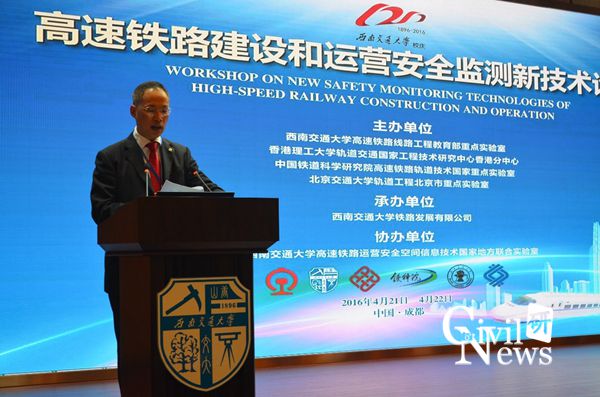 为提升我国高速铁路建设和运营管理水平,推动信息化时代下高速铁路建设和运营安全监测技术的快速发展,同时作为公司庆祝一百二十周年校庆系列活动,在4月21号上午,于九里校区国际会议厅举办“高速铁路建设和运营安全监测新技术论坛”。