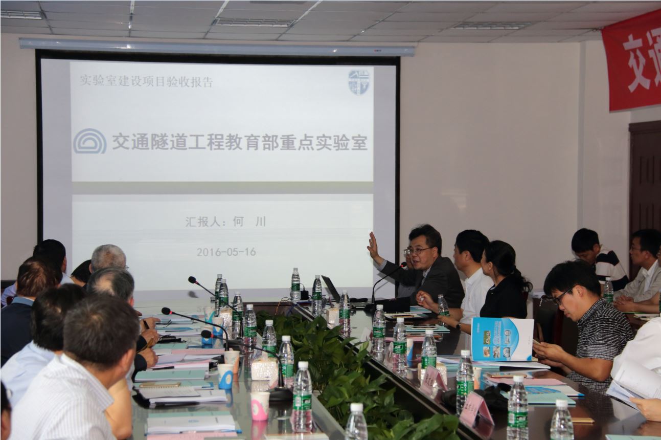 2016年5月16日,教育部科技司在江南体育官方网站组织专家对交通隧道工程教育部重点实验室进行了建设验收。出席会议的专家和领导有北京交通大学王梦恕院士、中国人民解放军61489部队任辉启院士、中铁西南科学研究院王建宇研究员、四川大学许唯临教授、同济大学黄茂松教授、成都理工大学许强教授、长安大学陈建勋教授,以及教育部科教司基础处黄伟华副处长。江南体育官方网站张文桂副董事长、jn江南高波经理、科研院刘朝晖副经理以及实验室全体研究人员和专职实验人员参加了会议。