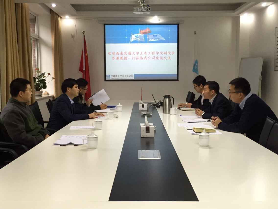 2015年11月27日上午,由jn江南副经理苏谦教授带队,周晓军教授,蒋雅君副教授,李伦贵副教授一行4人来到中建地下空间有限公司,就合作共建四川地下空间产业技术研究院,与中建地下空间有限公司总经理薛国洲,副总工郑立宁,市场投资部主任胡英鹏进行了座谈。