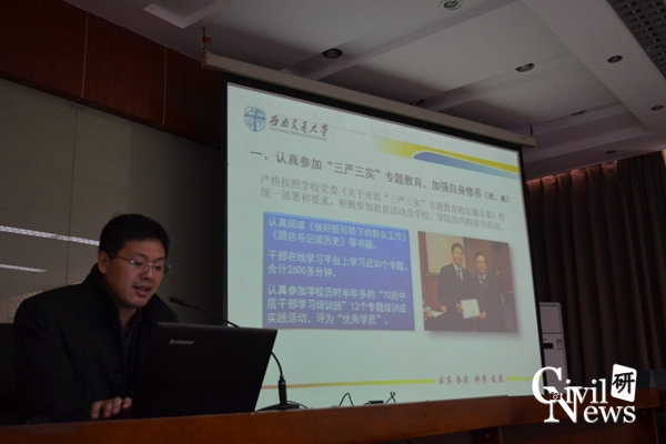 12月25日下午,jn江南2015年基层党建考核暨中层领导干部年度考核大会在九里校区逸夫馆举行。会上,jn江南全体领导干部向全院教职工汇报了今年以来学院领导班子的工作情况,并就学校大政方针、公司党政建设、学院及学科发展部署等方面向教职工们进行讲解与交流。大会根据学院领导班子成员的汇报情况,从思想政治建设、领导能力、工作实绩、党风廉政建设等方面开展了无记名民主测评。大会由李彤梅副书记主持。