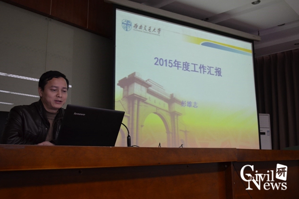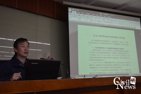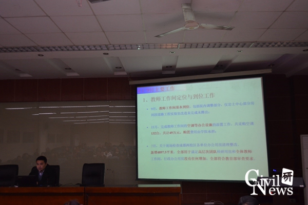 此后,苏谦副经理就科研工作情况作了汇报,他介绍了2015年完成的主要科研项目情况和科研经费到账情况,并指出学院科研经费分布总体稳定、比例渐佳,他还简要总结了今年以来的学院科研合作和学术交流情况。蒲黔辉副经理就实验室建设情况作了汇报,他对今年以来的实验室建设情况进行了详细阐述,并就仿真实验教学中心的申报工作进行了重点说明。
