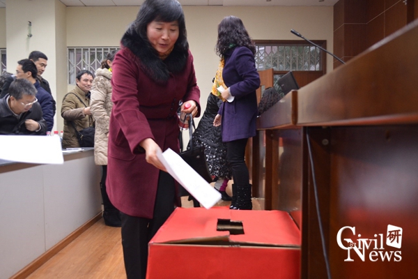 教职工们进行民主评议