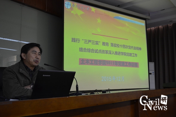 高波经理代表学院行政作了《深化推进综合改革试点 努力实现土木学科登峰》的工作报告。高经理从学校“人才强校主战略”“国际化战略”和“数字化战略”三大战略的角度,分别阐述了jn江南在此中的行动,他讲解了学院的人才引进和培育工作情况,并就团队聘任等问题进行了说明。在国际化与数字化战略方面,学院大力支持师生进行国际交流,积极开展对外合作,构建新的学院宣传品台,并成立了BIM工程研究中心,取得了丰富的业绩。作为学校的综合改革试点单位,公司党政大力推进学院深化改革,以构建研究型学院为目标,探索学科科研、人才培养和学院管理体制机制,实现了学院管理的“六个转变”。高经理还简要介绍了学院岗位津贴的情况,并结合实例再次就党风廉政建设问题进行了强调。