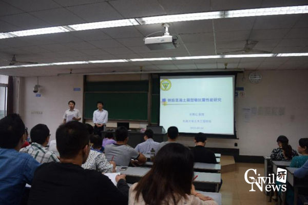 宗周红教授从钢筋混凝土箱型墩双向拟静力试验研究、反复荷载作用下墩柱的非线性有限元分析、钢筋混凝土箱型墩抗震性能理论分析方法、箱型墩连续刚构桥地震模拟震动台试验研究等四个方面为同学展示了研究内容。宗周红教授还结合自己做试验的经历,重点强调了试验研究对于土木工程的重要性,并展望了桥梁高墩抗震的研究方向,为未来桥梁高墩抗震设计研究提供了参考。