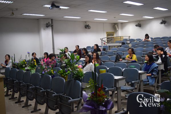 本次活动分四个阶段进行:(1)党委副书记李彤梅宣布活动开始及活动流程;(2)杨丽江老师开展专题讲座;(3)插花艺术协会的四位老师进行现场教学;(4)现场进行插花创作,并评选出佳作。
