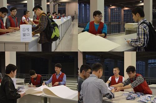 4月12日晚,第十四届结构设计竞赛各组的材料发放活动于四教二楼进行。为了避免人数众多引起的不必要时间耽搁,这次发放活动采用“一条龙服务”,以单进单出的方法进行发放,并在进口处安排有人员进行维序与指导,整个过程不超过5分钟。