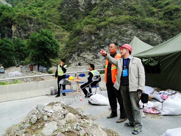 姚令侃教授在泸定县公路震害现场提供科学咨询