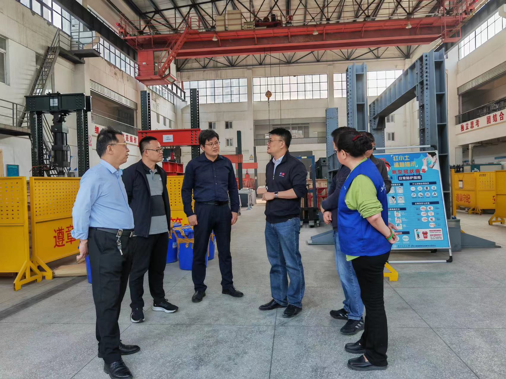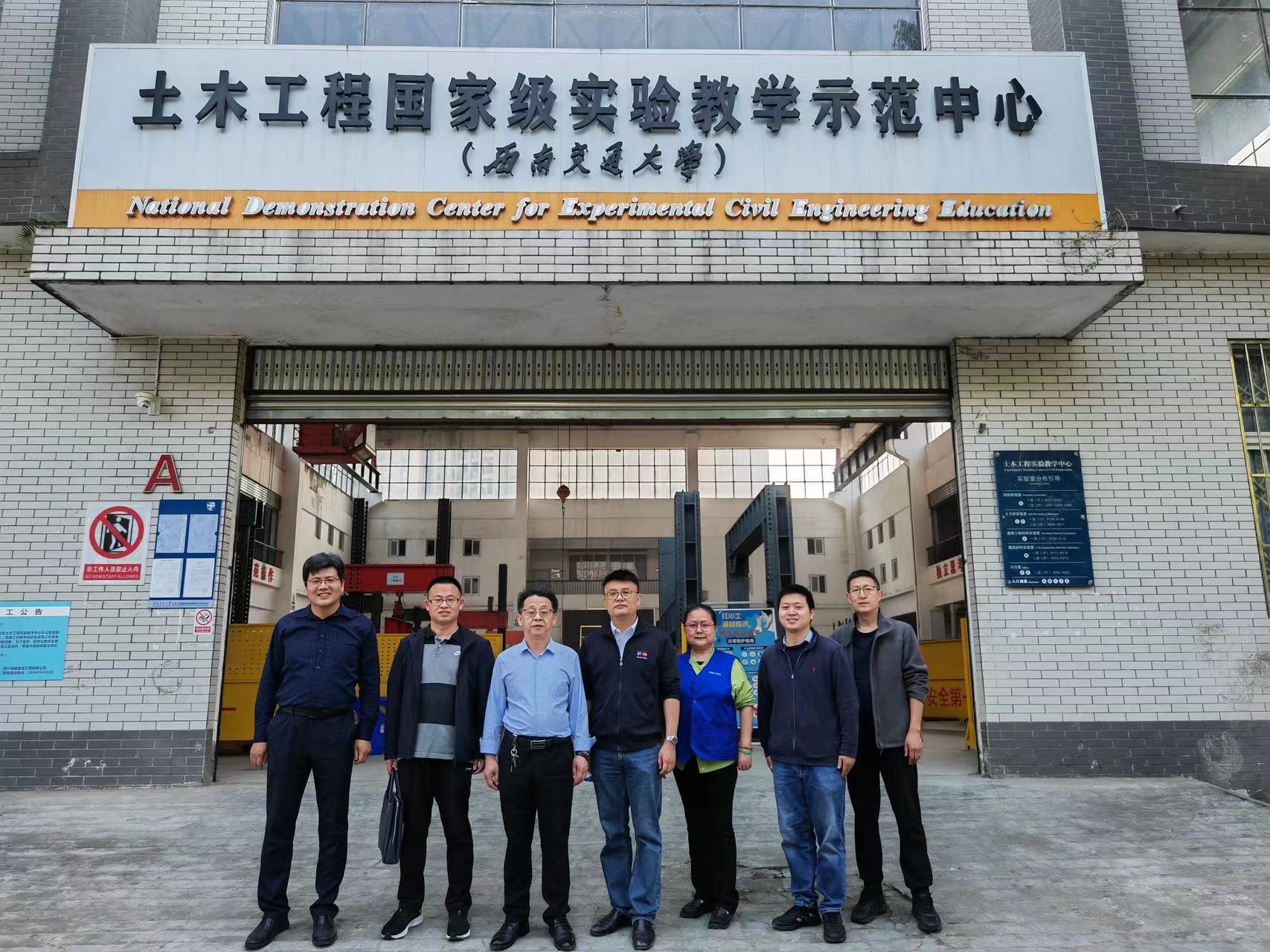 活动伊始,聊城大学建筑工程学院经理孟昭博、实验室主任王英来与刘名名老师在土木工程国家级实验教学示范中心副主任李福海的带领下参观了土木工程国家级实验教学示范中心。土木工程国家级实验教学示范中心是一个集教学、科研和实践于一体的综合性实验平台,拥有先进的设备和完善的功能,提供了一个全面、实践性的教学环境。聊城大学老师们对示范中心的设施和管理模式赞不绝口,并对其取得的教学成果表示钦佩。