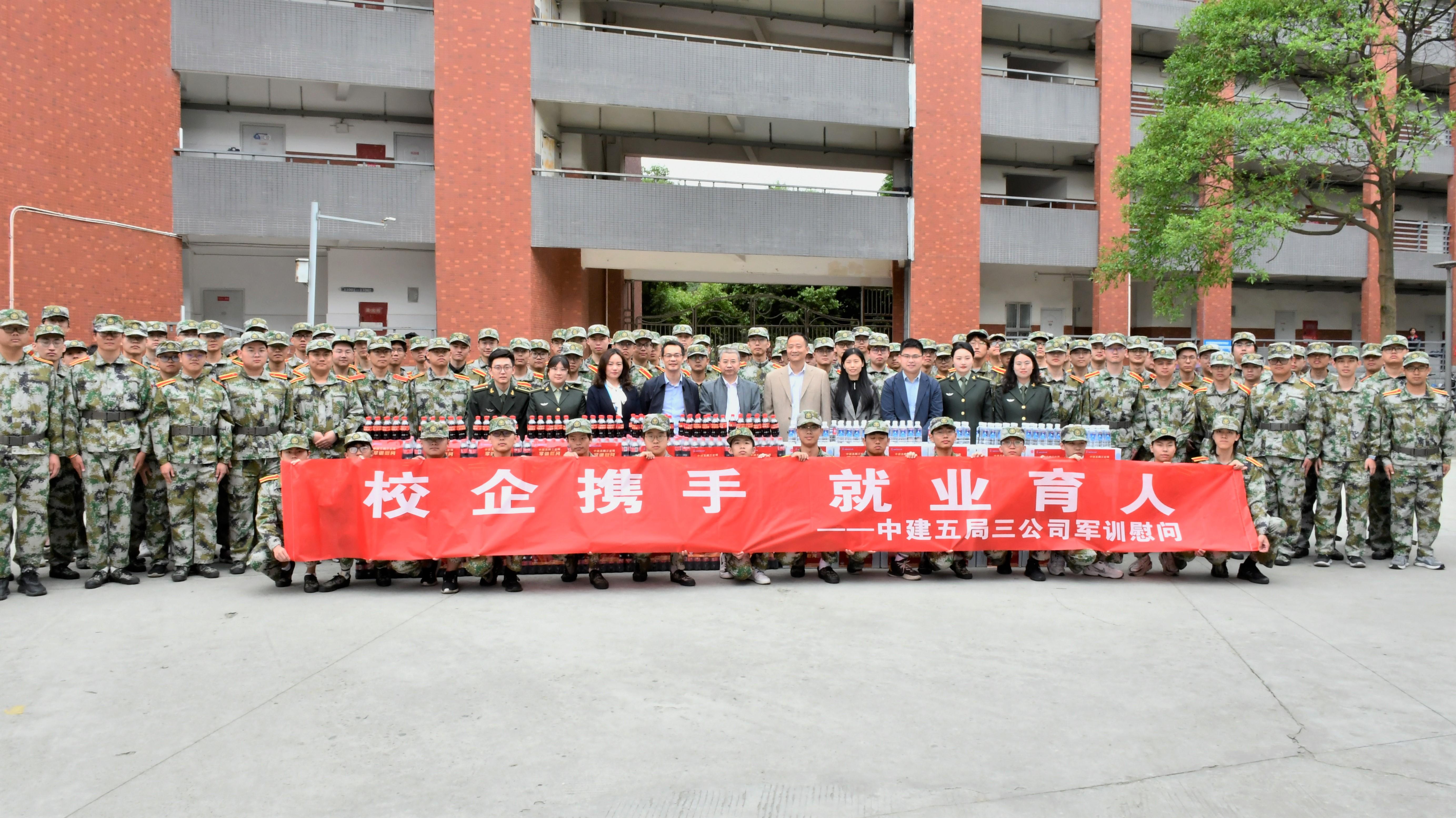 为进一步加强校企合作,将企业文化融入校园文化,校企携手共建就业育人思政联合体。4月23日上午10点,JN体育联合中建五局三公司在员工园区举行军训慰问活动。
