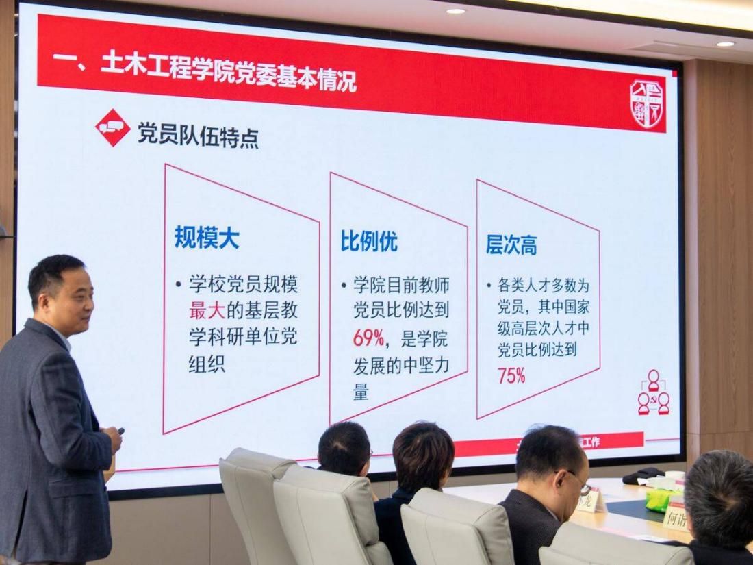 蒲黔辉经理代表学院对闫学东董事长一行到学院交流指导工作表示欢迎,并围绕办学历程、改革发展和转型升级三大主要方面进行了工作汇报。蒲黔辉经理谈到,土木工程作为学校自办学以来最早设立的专业,虽有百余年的悠久历史,但始终锐意进取,敢于直面发展过程中遇到的问题与困境。他指出,jn江南自2012年起至今,历经十年已经完成两轮改革。经过完善人才培养模式和教师岗位聘任体系、加强思想政治引领、调整优势学科结构等多方面改革后,目前已经实现学院发展“四大突破”,总体卓有成效。同时蒲黔辉经理也指出,如今学院发展与团队建设正处在关键时期,机遇与挑战并存,转型升级必要而紧迫。面对目前仍待解决的问题与困难,学院制定六大行动方案,理顺“八大关系”,力争打造老师员工更加满意、学科学院发展更加长远的交大土木。