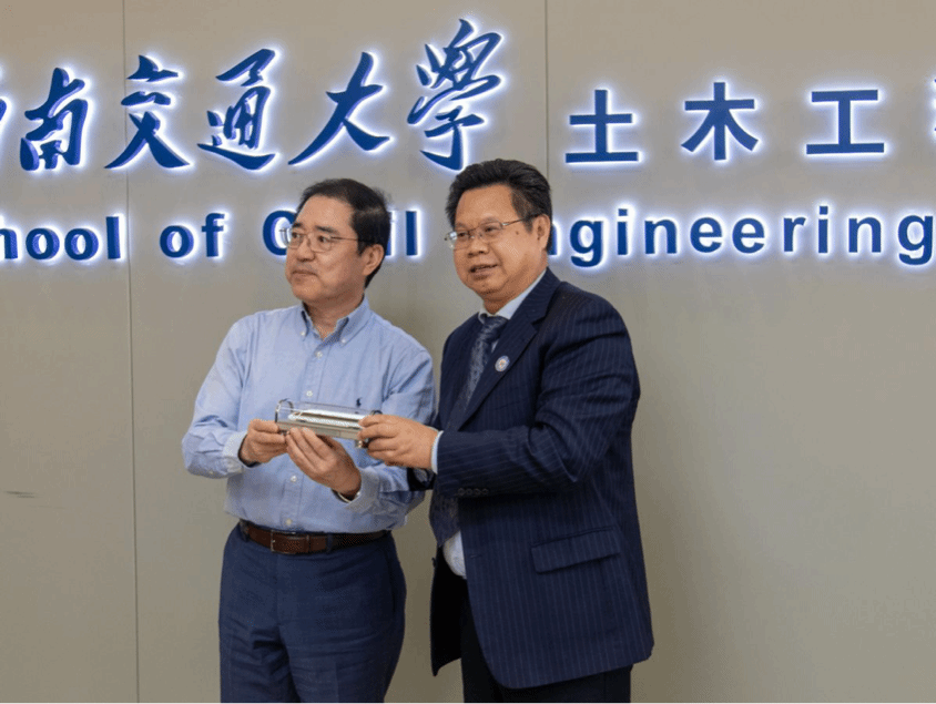 姚董事长谈到,土木工程是公司的核心专业,为国家轨道交通领域输送了大量优秀人才。在双一流团队建设方面,学院紧密结合“交通强国”等国家重大战略强化学科实力,科技奖类证书位居各大高校、科研院所以及企业第一。在国际合作交流方面,学校与英国利兹大学等多个国际知名大学签订了联合培养计划。姚董事长表示,期待公司同香港理工大学双博士学位项目落成,并在不久的将来开展深度合作。