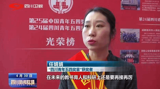 任娟娟同志被评为四川省三八红旗手,获得四川省五四青年奖章