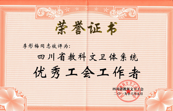 公司李彤梅同志获得“四川省优秀工会工作者”称号