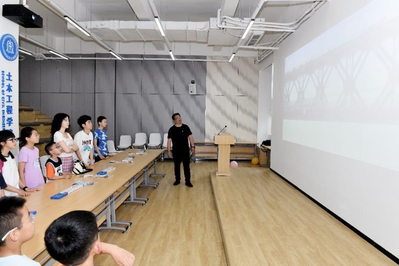 接下来,桥梁工程系党支部张方老师向家长和同学们介绍了我国桥梁工程的发展和本次活动的实践要求。本次活动分为成长组和挑战组,分别需要桥小苗们动手完成一座定制形式木桥和自创意形制木桥的搭建工作。完成作品均需满足造型美观、结构受力合理的要求,并具备一定的承载能力和稳定性。