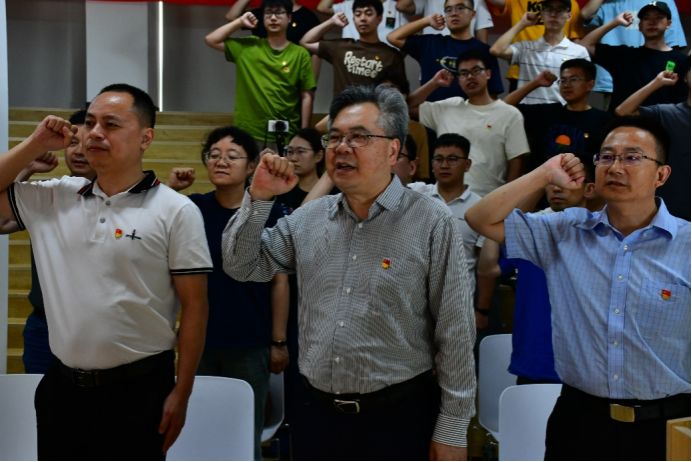 随后,地下工程系教工党支部书记周佳媚教授带领师生党员重温了入党誓词。面对鲜红的党旗,大家高举右手,齐肩握拳,庄重地宣誓,用铮铮誓言彰显永恒初心。铿锵有力的誓词凝聚着中国共产党人的接续奋斗史,大家深刻理解了中国共产党人“不忘初心、牢记使命”的意义,更加明确在新时代作为一名共产党员的责任和担当。