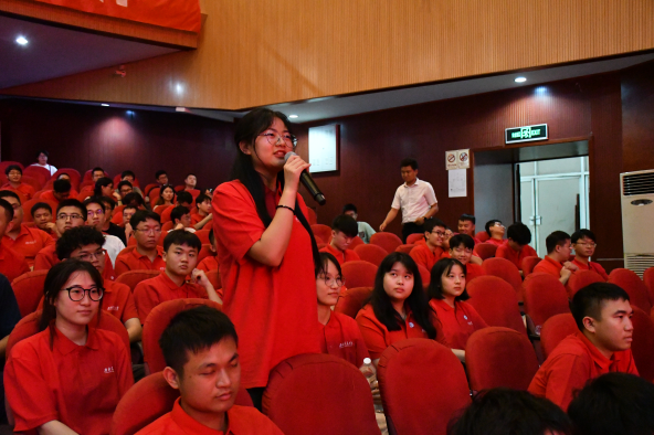 最后,在富海鹰副经理的主持下,郑俊杰教授以“从优秀到卓越—如何度过研究生生活”为题为全体新生带来精彩的报告。郑教授以其丰富的公司产品经验为基础,从“我的公司产品经历”谈起,深入剖析了卓越人才应具备的素质。他强调,研究生不仅要学会做学问,更要学会做人,培养高尚的道德情操和社会责任感。