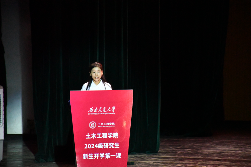 首先,蒲黔辉经理代表学院对新生到来表示热烈欢迎,并详细介绍学院院情。蒲经理回顾了百年土木的发展历程,细数了历代土木人不懈奋斗的足迹与取得的成就,并强调,在未来,学院将积极响应国家发展战略,围绕学科转型升级三大新方向,推动学科交叉融合与创新发展,为培养新时代土木工程领域的领军人才奠定坚实基础。