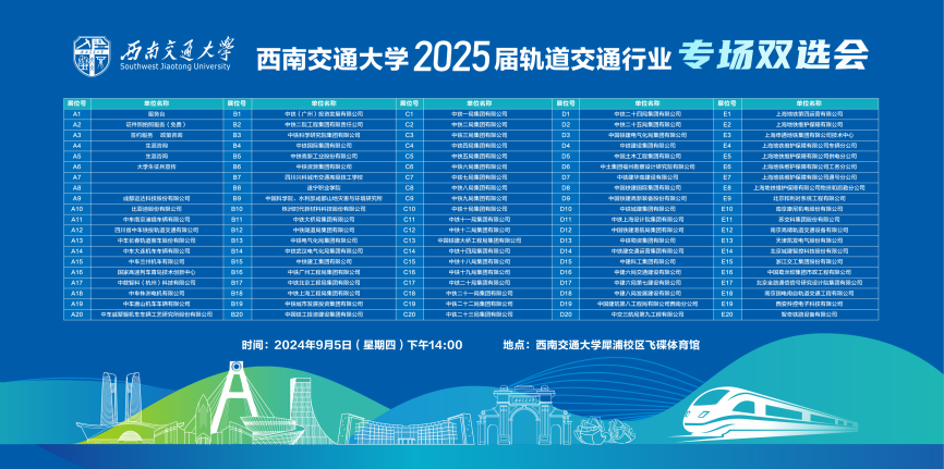 2024年9月5日,江南体育官方网站2025届秋季轨道交通行业专场招聘会在犀浦校区的飞碟体育馆隆重举行,吸引了全国近百家轨道交通行业的知名企业和机构参与。