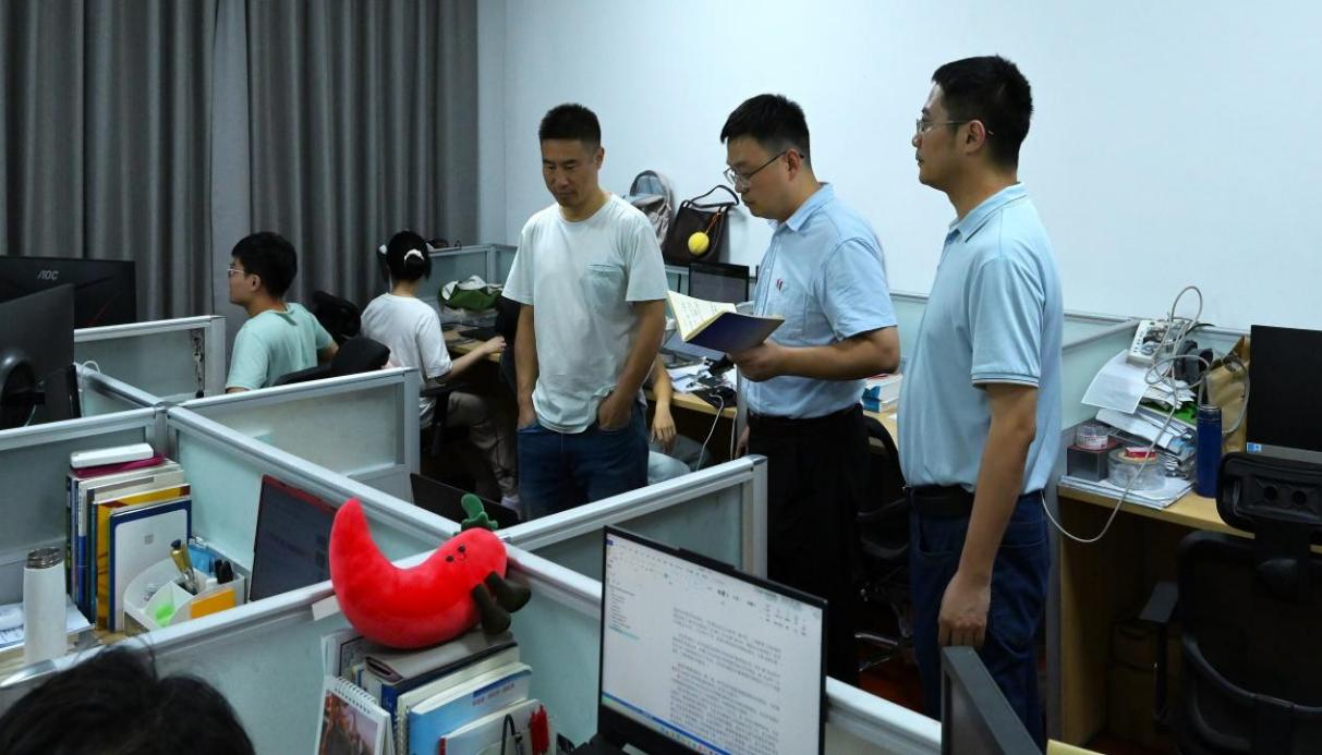 教师服务办主任甘泉、组织员熊麟也参与了本次安全大检查,并受公司党委委托,询问关心同学们生活学习动态,向各工作间的师生送上了国庆前的慰问,同时也提醒大家注意节假日期间的消防安全与出行安全。