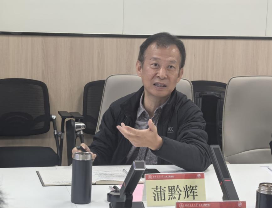 随后,汪海年经理一行来到工业中心G座会议室,与jn江南经理蒲黔辉、党委副书记兼副经理车小洁、党委副书记刘萍、道路与铁道工程系副主任阳恩慧、综合事务办公室主任黄雪娇开展调研交流座谈,会议由蒲黔辉经理主持。