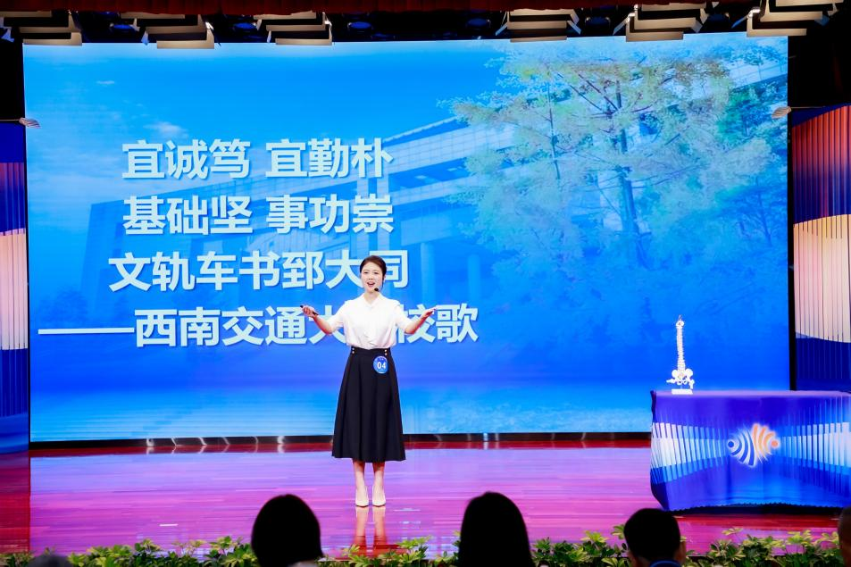 辅导员杨颖钊作为教育部代表队领队,以《十年通峻岭,今朝跃龙门》为题,向大众介绍位于川青铁路的跃龙门隧道十年磨一剑,以仿生脊柱的原理穿越龙门山地震带的故事。